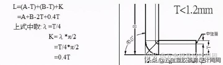 补偿量并非固定不变,而是通过多年的模具实践总结出来的一套公式。在产品的折弯过程中,靠近内侧材料与靠近材料外侧变化为,内侧压缩、外侧拉伸。